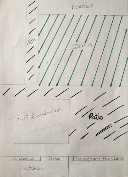 Take a paper and pencil to draw a square, rectangle or any shape that can represent your garden. Looking out towards the garden from the house. Start with the view that will be seen the most or take a look from two major windows. It is nice to have a slightly different angled view on a garden.